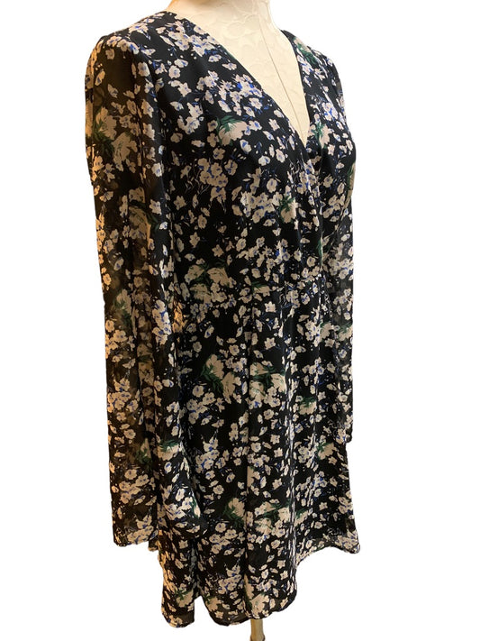 1 June & Hudson Floral Print Faux Wrap Dress Junior Women's Lined Sheer Sleeve