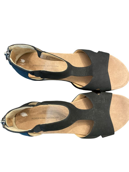 10 Balck Adrienne Vittadini Wedge Sandals Suede Zip Back