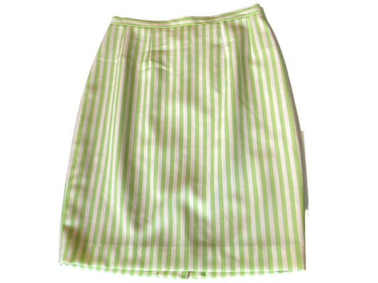10 Guy Laroche Vintage Lime Green Striped Lined Skirt France