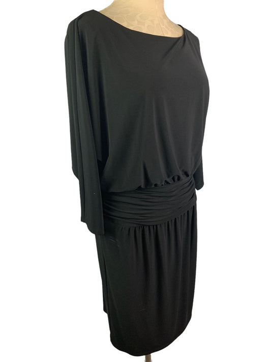 10 Evan Picone Black Blouson Dress 3/4 Sleeve Pullover Stretch