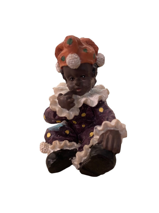 1999 Resin Clown Figurine Baby Brown Skin 2" Purple Outfit