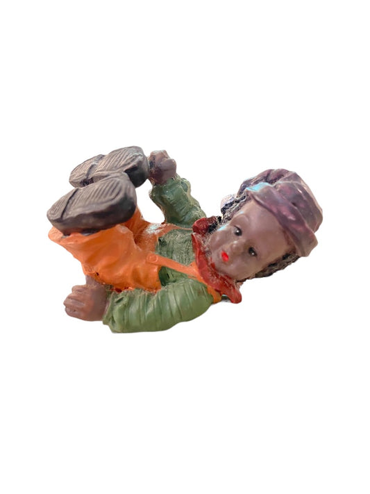 1999 Resin Clown Baby Figurine Brown Overalls 2" Brown Skin
