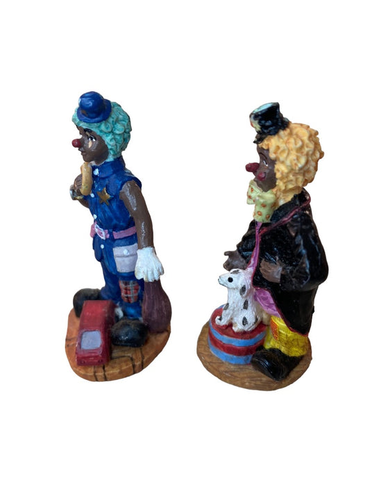 1999 Resin Clown Figurine Brown Skin Set of 2 Dog Magic 2.5"
