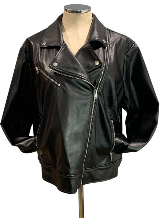 Size 2X Nine West Vegan Leather Womens Moto Style Jacket Black
