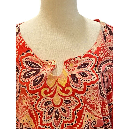 Size 2X Lucky Brand Boho Paisley Tunic Top Shirt Pullover Women’s Pinkish Red