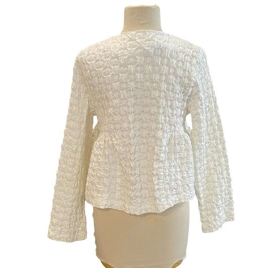 Size Medium Lorain Croft Short White Textured Crop Jacket Fitted Gorgeous