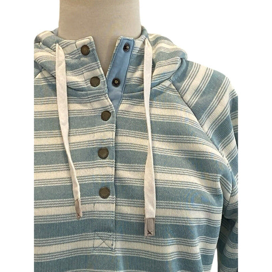 Size Small Eddie Bauer Hoodie Women Shirt Blue White Striped Pullover Pocket