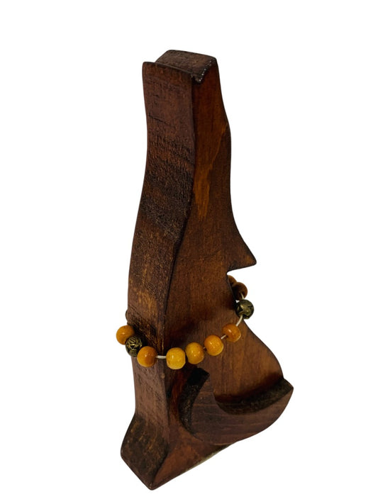 Small Wooden Howling Coyote Figurine Beaded Collar 5.5 Inch