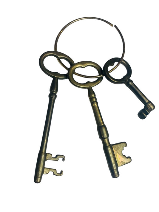 3 Solid Brass Jailers Pirate Church Skeleton Key Ring Set Victorian Decor