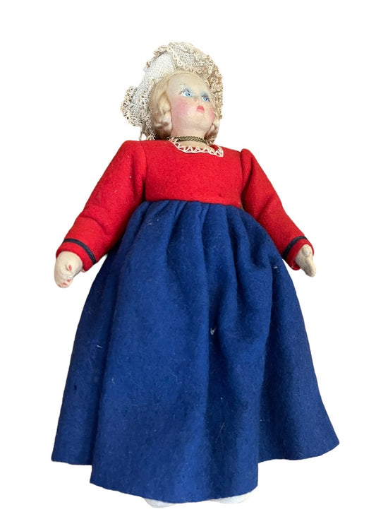 Vintage 1930s Rag Cloth Doll Articulated Handpainted Felted Wool 11"