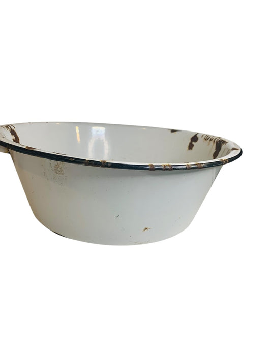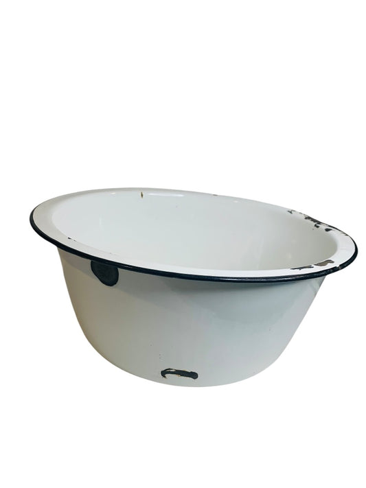 Vintage 16 Inch Round Enamelware Black White Tub Pierced Sieve