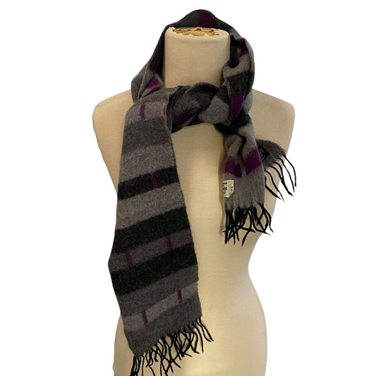 Vintage 100% Wool Scarf Made in West Germany Gray Purple Strawbridge