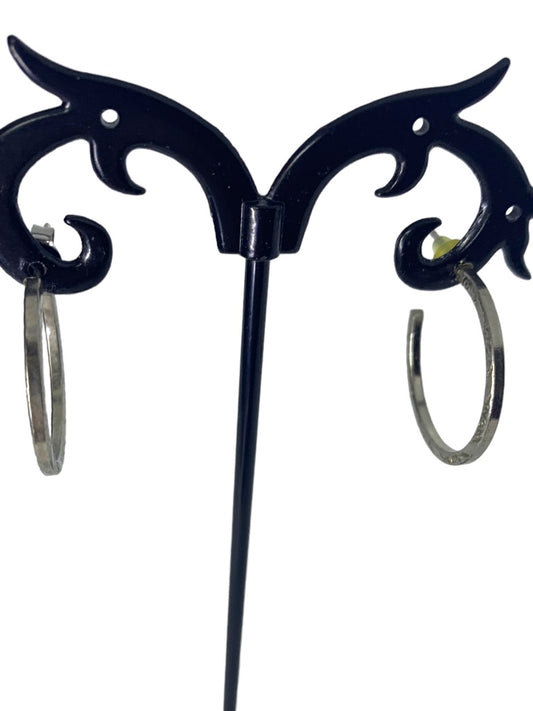 Vintage 1" Hoop Pierced Post Earrings Silvertone Delictate Etching