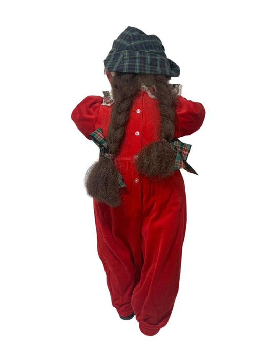 Vintage 1990s Hide n Seek Time Out Doll Girl Brown Braids Red Velour Plaid