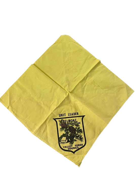 Vintage Bandana Yellow Unit Leader Delmont Scout Reservation Valley Forge Council 15 x 14"