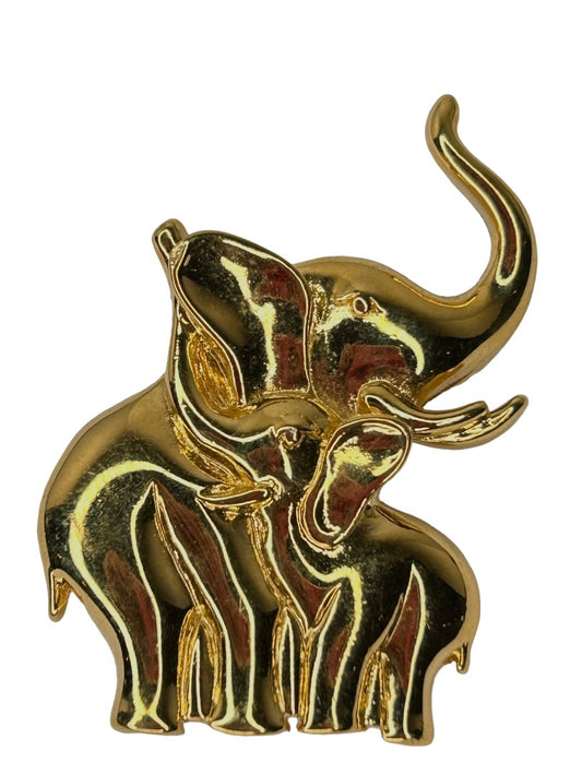 Vintage Goldtone Signed LR Lady Remington Mom Baby Elephant Figural Brooch Pin