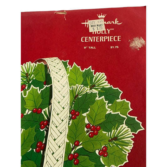 Vintage Hallmark Holly Basket Decor Christmas Centerpiece 9" Tall
