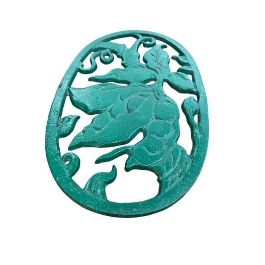 Vintage Green Cast Iron Peas Green Beans Kitchen Footed Trivet Taiwan