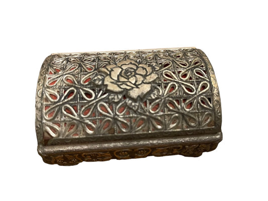 Vintage Japan Ornate Trinket Jewelery Footed Box Ornate Mirror