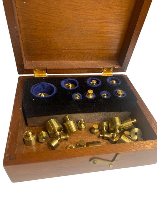 Vintage Lot of 29 Jewelers Weights in Wooden Box Apothecary Medical C