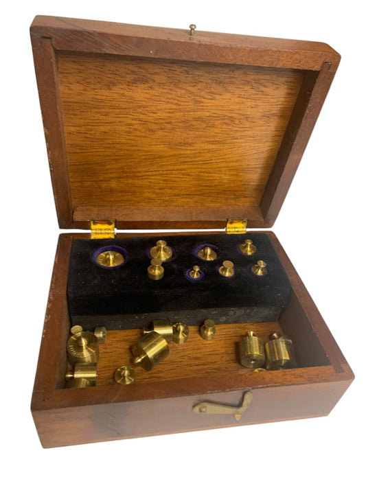 Vintage Lot of 25 Jewelers Weights in Wooden Box Apothecary Medical B