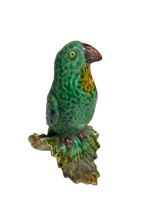 Vintage Majolica Portugal Figural Green Parrot Frog 5 Inch