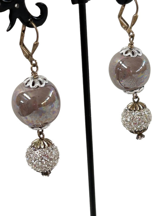 Vintage Leverback Pierced Earrings Crystal Orbs 2.25" Drop Dangle