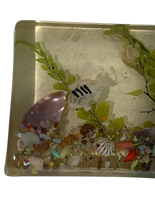 Vintage Lucite Fish Aquarium Paperweight Hanging Ornament 4.1 x 2.5"