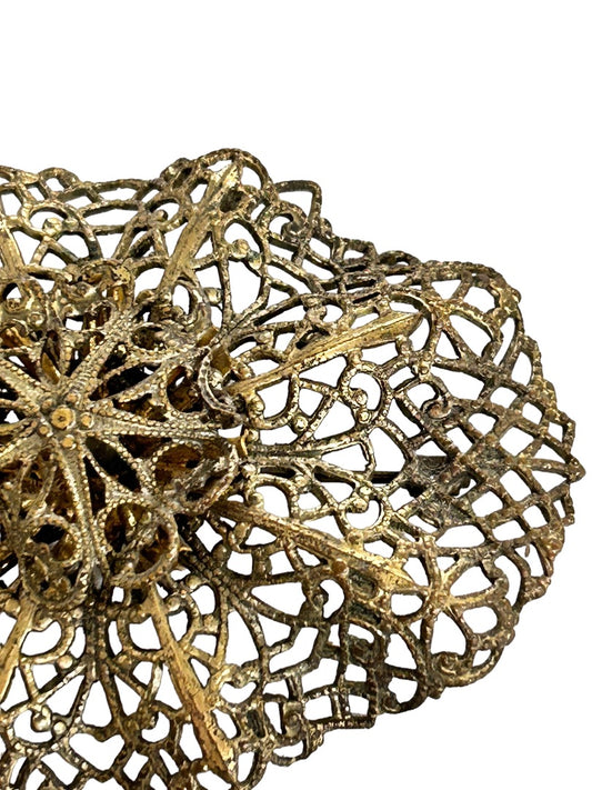 Vintage Oval Lacy Filigree Brass Color Brooch Statement Piece 2" x 2 3/4"