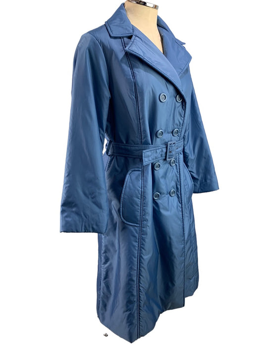 10P Bromleigh Women's Blue Insulated Trench Winter Coat Vintage 1980s