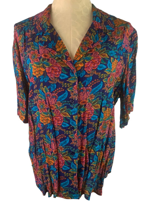 10P Surburban Petites Women's Vintage 80s Short Sleeve Button Up Blouse Floral