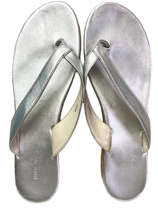 10.5 Nine West Silver Thong Sandal Flip Flop Cork Sole Women's