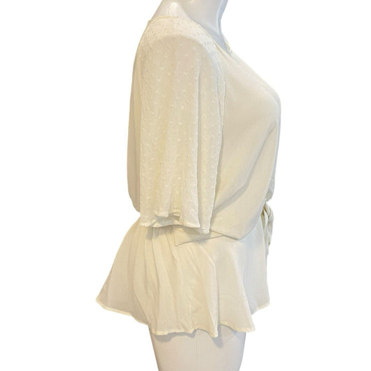 3x Perch Anthropologie Women's Cream Swiss Dot Cottagecore Blouse Top Shirt Tie