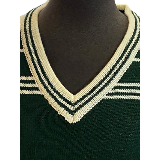 VINTAGE Size Medium Snowdrift Acrylic Sweater Mens Pullover Green V-Neck Preppy