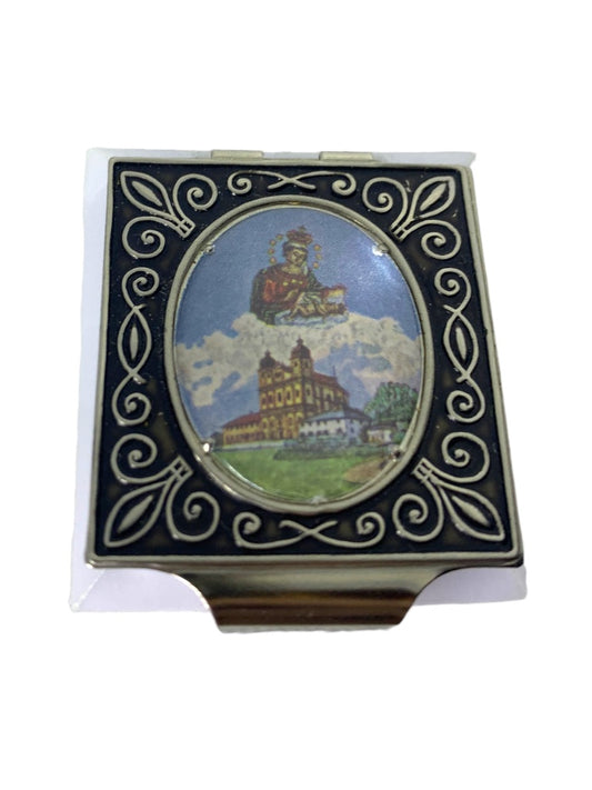 Vintage Travel Rosary with Box and St. Anthony Figure Plastic 1.5" Square