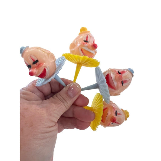 Vintage Wilton Clown Head Cupcake Cake Toppers 773 Lot of 4 Birthday Decoration
