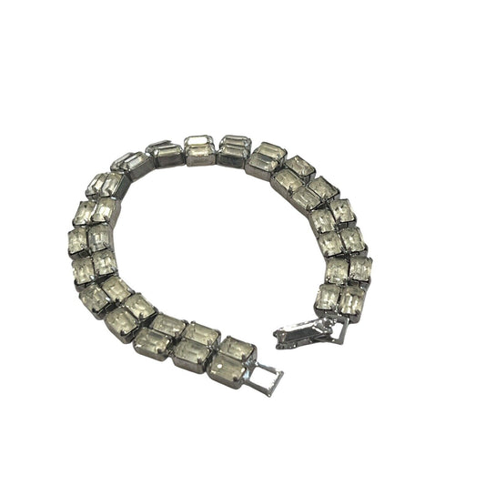 Vintage WEISS Double Strand Clear Baguette Rhinestone Tennis Bracelet Signed 7"