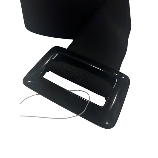 Vintage Wide Black Elastic Belt 39.5” Long Plastic Buckle VTG 80’s 90’s