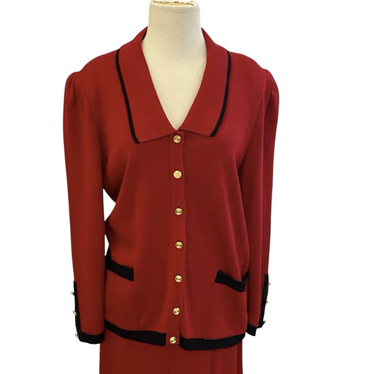 Vintage Vivanti Christmas Red Knit Sweater Skirt Set Size 12 Classic Holiday