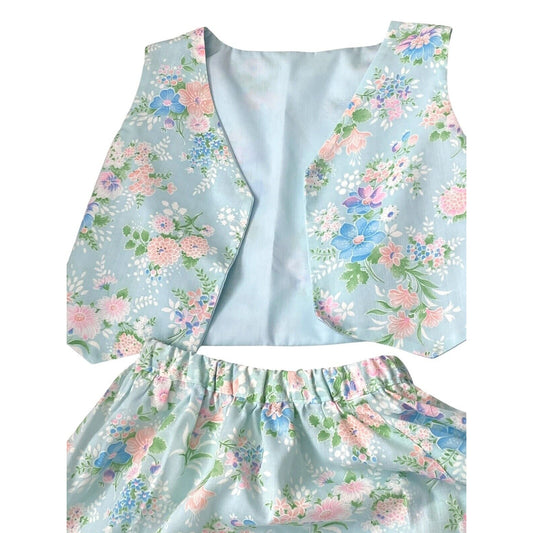 Vtg 60s 70s Skirt Vest Set Girls Floral Pull On Cottagecore Pastel Handmade