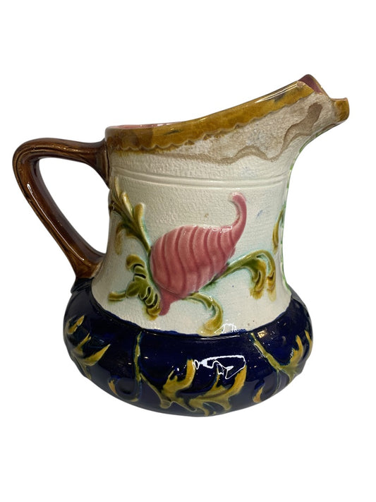 Wardle Signed Antique Majolica 7 Inch Pitcher Seashell Vibrant
