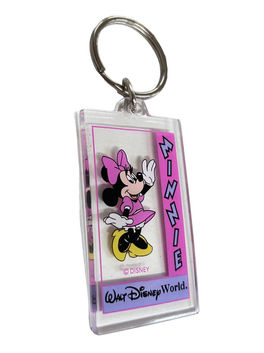 Walt Disney World Minnie Mouse Acrylic Keychain Key Ring Pink Purple