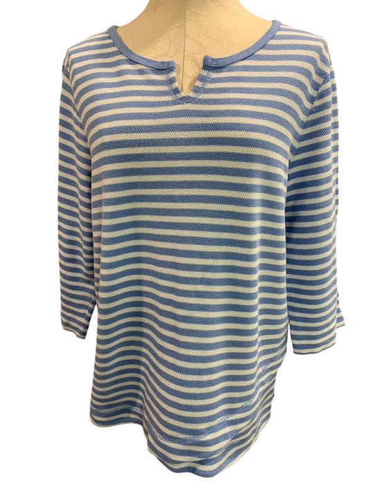 XL T by Talbots Womens Striped Cornflower Blue White Pullover Casual Sweater