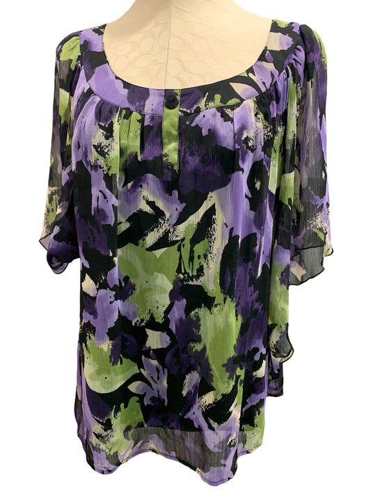 XL Sara Michelle Pullover Womens Flowy Blouse Shirt Scoop Neck