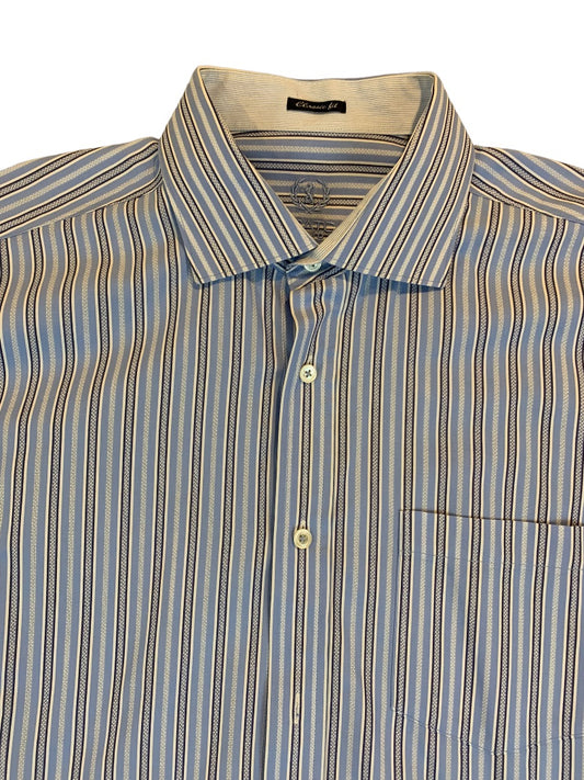 XL Robert Talbott Men's Purple Pink Striped Button Up Dress Shirt 100% Cotton