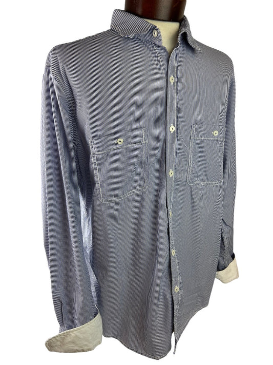 XL Tasso Elba Men's Casual Button Up Blue White Striped Contrast Cuff