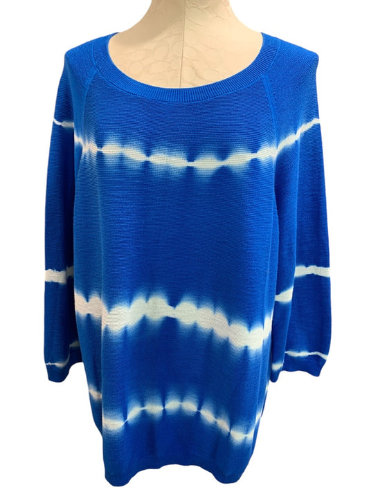 XL Talbots Womens Blue Tie Dye Pullover Casual Sweater 3/4 Sleeve