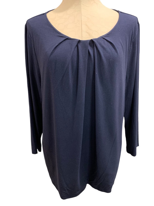 XL Talbots Womens Navy Blue Pullover Shirt Pleated Scoop Neck
