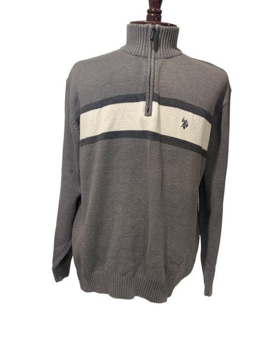 XL U.S. Polo Assn Mens Gray Stripe 1/4 Zip Pullover Sweater 100% Cotton