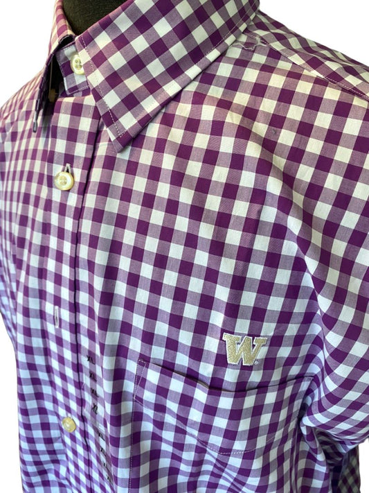 XL Washington Huskies Men's Button Down Gingham Shirt The W Collection NWT